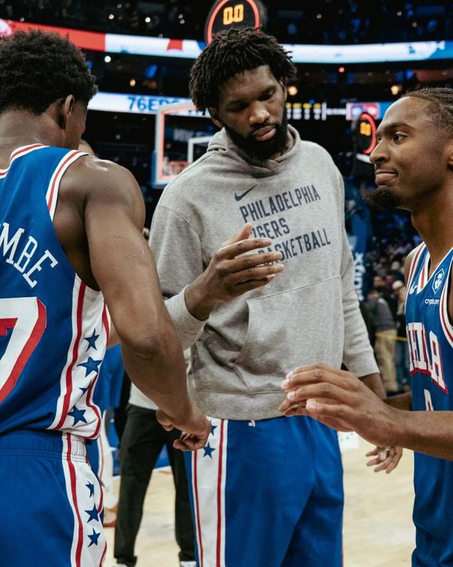 一個(gè)馬克西,一個(gè)埃奇庫(kù)姆,這兩位目前場(chǎng)均能合砍62分,并且?guī)ьI(lǐng)76人3勝0負(fù)——話至此,很難不擔(dān)心下恩比德啊。